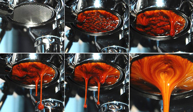 Espresso Extraction Trouble Shooting. Portafilters Bottomless cho phép các barista để ngay lập tức suy ra thời tiết kỹ thuật đầm thích hợp đã đạt được. Nếu khai thác nghiêng sang một bên hay khác một góc không đúng cách đã được sử dụng khi đầm. Nếu dòng giả mạo của espresso được nhìn thấy từ đáy giỏ có thể là portafilter của bạn đã được san bằng và hay định lượng không đồng đều.