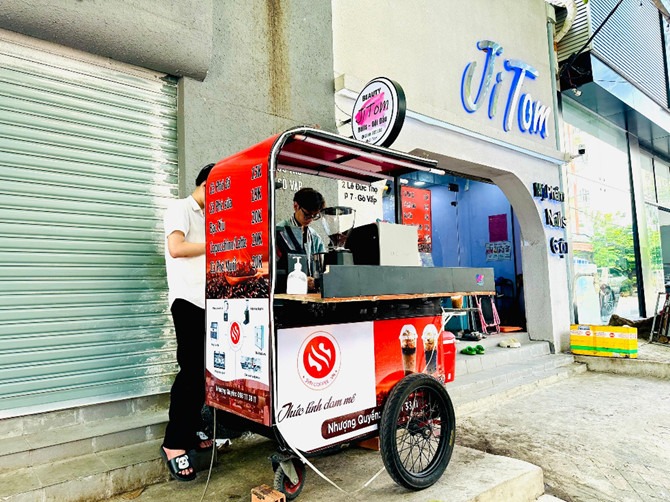 | Với khách hàng đầu tư kinh doanh café - Ưu tiên các mặt bằng có lượng giao thông qua lại nhiều , đông dân cư , có bóng mát và thuận tiện dừng đỗ xe mua hàng - Chúng ta sẽ không phải đầu tư nhiều vào cơ sở hạ tầng, cũng như không gian giống như các quán cà phê sẽ giúp chúng ta Tiết kiệm chi phí và hạn chế rủi ro rất lớn - Với mô hình điểm bán cà phê này khách hàng có thể gói gọn một mô hình kinh doanh chỉ trong một xe cà phê. Trong trường hợp rủi ro nhất, địa điểm kinh doanh chưa tốt, chúng ta có thể di chuyển toàn bộ những thứ chúng ta đầu tư sang một địa điểm khác mà vẫn dùng được mọi thứ | ![]() |