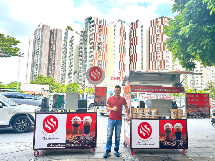 | Ưu điểm vượt trội khi triển khai mô hình Cà phê xe đẩy SVNcoffee * Với khách hàng đang có sẵn địa điểm ( Tối ưu mặt bằng và nhân sự có sẵn ) - Lợi thế khi đầu tư xe café khách hàng có thể tiết kiệm nguồn tiền chi trả cho café hàng ngày - Tối ưu mặt bằng, với địa điểm kinh doanh có sẵn, khách hàng có thể tạo thêm giá trị và lợi nhuận thông qua mô hình cà phê xe đẩy - Tận dụng tối đa thời gian kinh doanh trên mặt bằng có sẵn ( Công ty, Nhà hàng, khách sạn, quán bar, xổ số kiến thiết ) - Gia tăng được dịch vụ và tăng thêm chế độ đãi ngộ cho nhân viên ( Khách sạn, công ty … ) - Tận dụng nhân sự có sẵn, bảo vệ , phục vụ, lễ tân. Thay vì ngồi chơi khi rảnh rỗi. Nhân sự có thể pha cà phê phục vụ cho khách hàng. Gia tăng thêm nguồn thu cho chủ đầu tư ( Gara oto, Hiệu thuốc, Siêu thị) | ![]() |